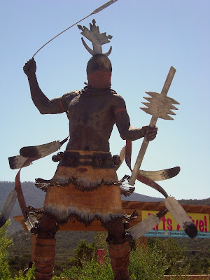 And a LARGER than life-sized (HUGE, I tell you!) bronze Apache dancer. While I giggled at the signage behind this sculpture seeming to say "IT'S ALIVE!", I believe the actual quote was "Arts Alive"...and it certainly is, in Santa Fe! Next stop, Albuquerque...